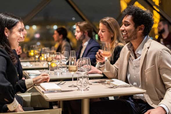 En esta cena en el restaurante de la Torre Eiffel disfrutaréis de un menú de 3 o 4 platos, dependiendo de la modalidad elegida. Mientras os deleitáis con las diferentes elaboraciones gastronómicas, disfrutaréis además de la iluminación de París, con unas hermosas panorámicas del Trocadero y el Campo de Marte.