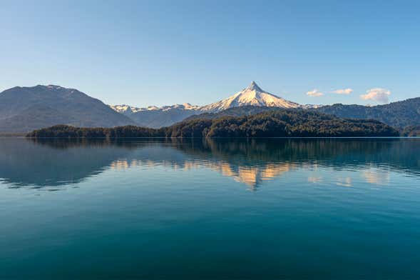 Una vez lleguemos al muelle, emprenderemos un paseo en barco por el lago Todos los Santos. Durante la travesía, de aproximadamente dos horas de duración, divisaremos el perfil de la isla lacustre de Margarita. También atisbaremos desde la cubierta del buque las nevadas cumbres de los cercanos volcanes Osorno, Puntiagudo y Tronador.