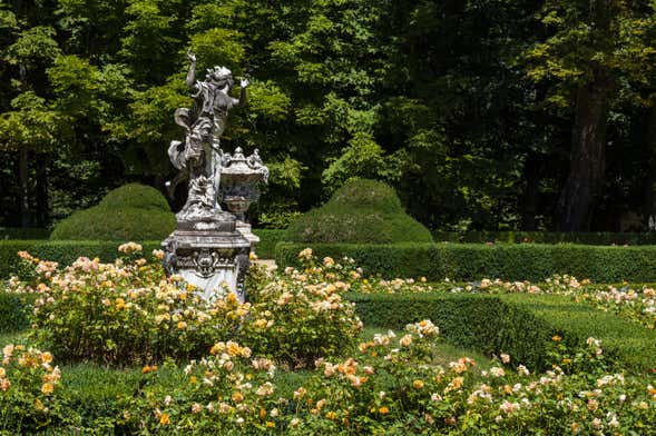 También descubriremos las avenidas y calles más singulares, como la calle de la Alameda, la calle de la Reina o la calle de la Calandria. Además, entraremos en los famosos jardines para pasear brevemente por ellos y contemplar algunas fuentes mitológicas, entre las que destacan las de La Fama, La Selva, Neptuno, Apolo, Las Ranas, Las 8 Calles o Los Baños de Diana.