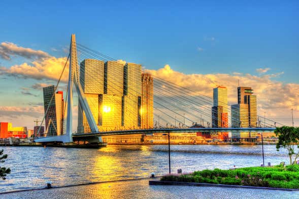 Continuaremos el paseo en el famoso mercado cubierto Markthal, cuya estructura también llama bastante la atención. Como broche final, nos acercaremos hasta una de las joyas arquitectónicas de Róterdam: el célebre puente Erasmusbrug.