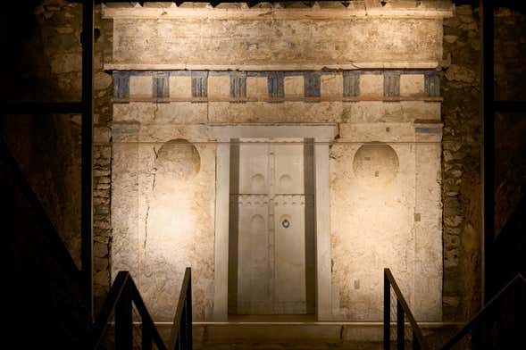 La siguiente parada de nuestro recorrido será en el Museo de las Tumbas Reales, un sitio protegido por la Unesco. Además, visitaremos monumentos funerarios impresionantes, como la tumba real de Filipo II, el padre de Alejandro Magno, y debajo del túmulo, podremos ver tesoros de oro que datan del siglo IV a.C.