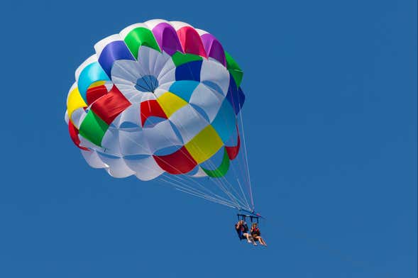 Durante esta actividad de parasailing, que tendrá una duración de 15 minutos, contemplaréis desde el aire la Costa Dorada. El litoral de Salou quedará bajo vuestros pies, en una experiencia única que sin duda recordaréis para siempre.
