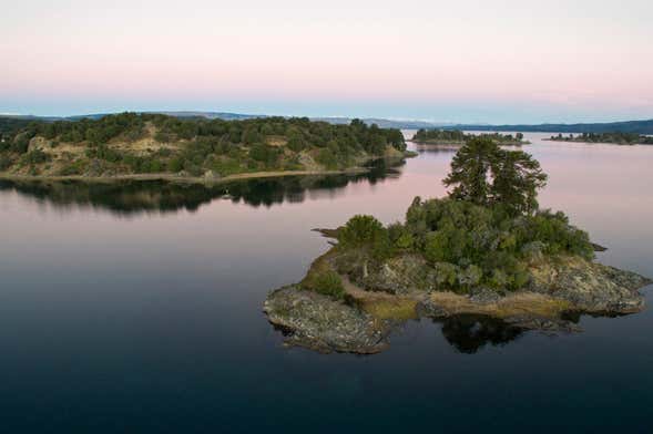 Una vez hayamos bajado del volcán, en el camino hacia Villa Pehuenia pasaremos por La Angostura, un estrecho canal que conecta los lagos Aluminé y Moquehue.