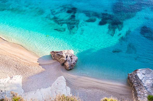 Tras pasar por los acantilados de Capo Monte Santu, nos adentraremos en el golfo de Orosei, donde nos esperan encantadoras playas como las calas Gabbiani, Mariolu o Biriala. Durante dos horas, podréis daros un chapuzón en alta mar y relajaros tomando el sol en la cubierta del barco con vistas a la playa Goloritze.