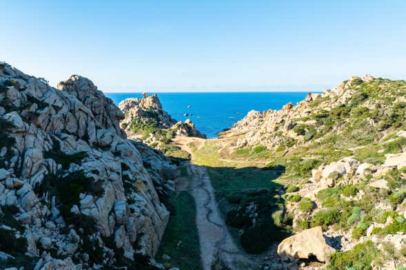 Recorreremos un sendero circular en la cumbre de Capo Testa, entre imponentes peñascos de granito. A medida que vayamos avanzando, iremos descubriendo las cuevas y pequeñas calas de aguas turquesas que surgen entre las rocas.