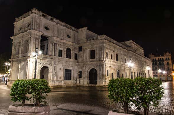Además, nos acercaremos a los Reales Alcázares, donde disfrutaremos de su estilo arquitectónico bajo la luz de la luna. Posteriormente visitaremos la Plaza del Cabildo, unos de esos rincones con encanto que no os podéis perder en cualquier recorrido por Sevilla.