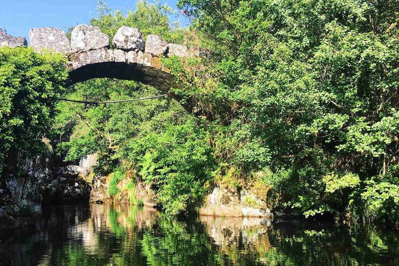 Empezaremos bordeando el valle del pueblo mientras contemplamos los bancales o cultivos típicos de la región. ¡Sus formas crean un paisaje realmente asombroso! Luego, atravesaremos el puente medieval para adentrarnos en la Ecovía do Vez. ¿Sabíais que está declarada Reserva Mundial de la Biosfera?