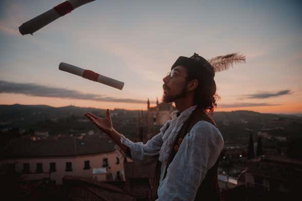 A lo largo de este paseo por la denominada Ciudad de las Tres Culturas, descubriremos en qué consiste el nuevo invento de Juanelo. Para ello, seguiremos a este divertido personaje por algunas de las estrechas y pintorescas callejuelas del casco antiguo de Toledo, cuya historia seguro que os sorprende.