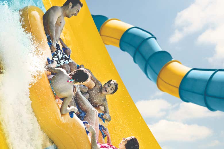 - Rock 'n' Roll Island: disfrutad del ambiente fresco y las emocionantes atracciones, incluyendo la torre de toboganes Jammin' Jukebox de 10 metros, con sus 3 toboganes súper rápidos.