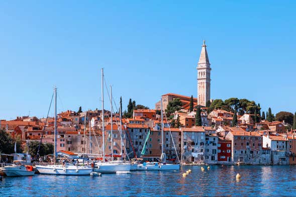Después, dejaremos atrás los vestigios romanos para desplazarnos hasta el pueblo medieval de Rovinj, donde destaca su arquitectura barroca y renacentista. Así, caminaremos por las pintorescas calles de su casco histórico hasta llegar a la iglesia de Santa Eufemia, patrona de la ciudad.