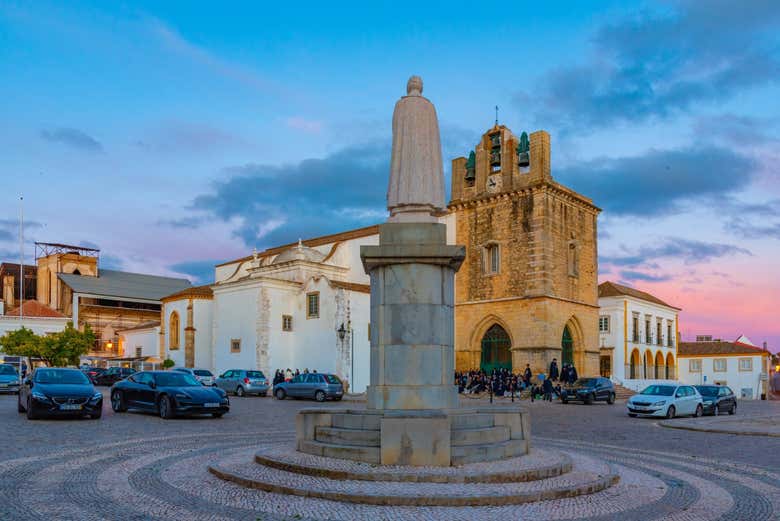 Prima di tutto, attraverseremo il centro murato di Faro, capitale dell'Algarve. Le sue strade acciottolate conducono a diverse piazze, e la più grande è Largo da Sé, la piazza della Cattedrale di Faro. Questo imponente tempio si distingue per la sua facciata in pietra e la sua torre medievale, che offre una splendida vista sulla città.