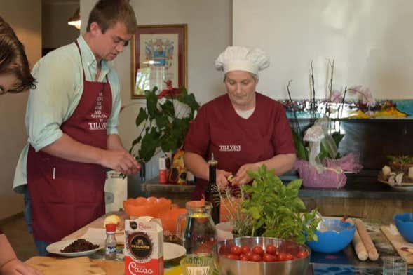 Cominceremo da una focaccia soffice e croccante, che prepareremo insieme a uno chef esperto, dall'impasto alla cottura. Subito dopo, ci dedicheremo alla preparazione della pasta fresca e di pizze vegetariane, prima di concludere con i fantastici tozzetti della mamma, dei dolcetti tipici dell'Umbria molto simili ai famosi cantucci. Il tutto mentre degusteremo ottimi vini e dell'olio extra vergine di oliva biologico.