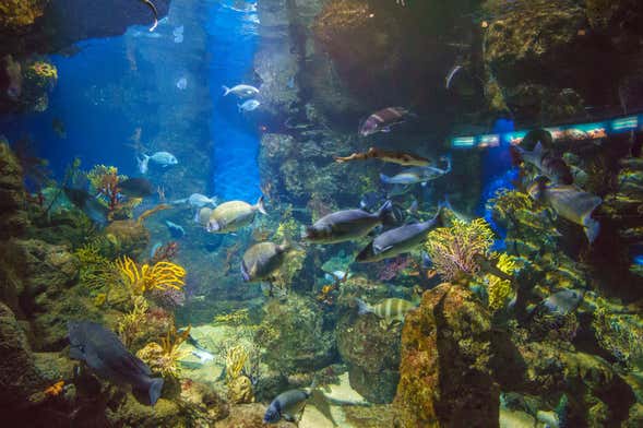 Unico in Europa, l'Oceanario contiene più di quattro milioni di litri d'acqua ed è popolato da specie come le orate, le murene, i pesci luna e lo squalo toro e grigio.