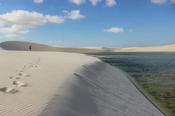 Attraverseremo il fiume in traghetto per dirigerci verso il Parco Nazionale dei Lençóis Maranhenses, punto di inizio della nostra avventura a piedi. Cammineremo per circa sette ore, lungo sentieri e dune di sabbia, fino al villaggio di Baixa Grande, dove conosceremo la famiglia locale che ci ospiterà per la notte.