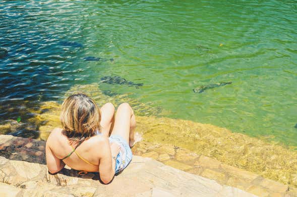 Con questo biglietto per le terme do Sol vi immergerete nelle acque cristalline del fiume Formoso in un'area privata con diverse piscine naturali circondate da un'esuberante vegetazione. In più, potrete prendere il sole nelle diverse zone relax della struttura.