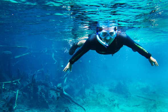 Rimarrete colpiti dalle acque cristalline del corso d’acqua, una trasparenza molto comune nelle correnti fluviali di Bonito dovuta all'alta concentrazione di calcare e all'effetto che questo minerale produce con il riflesso del sole. Vi sveleremo questo e altri dettagli mentre nuoteremo, ammirando la flora e la fauna acquatica.