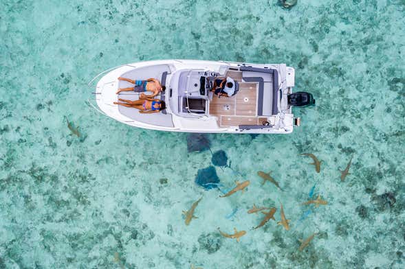 Per tre ore, avremo modo di navigare in barca alla ricerca dei luoghi più belli dell'isola. Durante la traversata, faremo diverse soste per fare snorkeling e conoscere gli abitanti marini di Bora Bora: tartarughe marine, squali pinna bianca, pesci tropicali... Chissà quanti ne riusciremo a vedere!