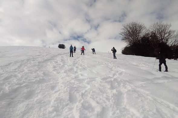 Dopo esserci dotati del materiale necessario per svolgere l'attività, inizieremo a percorrere la zona con le ciaspole: un modo molto semplice e divertente per esplorare le montagne innevate. Durante il tour godremo del paesaggio innevato dell'Alto Campoo, ricco di pini, laghi e fiumi ghiacciati. Il silenzio del bosco vi farà vivere un'esperienza unica.