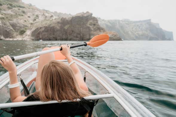 Una volta appresa la lezione, ci dirigeremo verso la spiaggia di Levante e inizieremo il nostro tour in kayak trasparente a Cabo de Palos. Questo splendido luogo nella regione di Murcia è composto da piccole insenature e imponenti scogliere che vi lasceranno a bocca aperta. Non dimenticate la macchina fotografica!