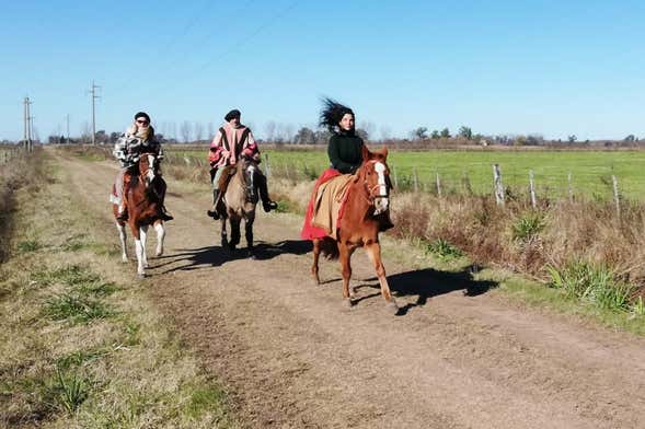 Dopo aver scelto i cavalli creoli che meglio si adattano a ciascun partecipante, si terrà un breve discorso sull e regole dell'equitazione. Una volta preparati, inizieremo una tranquilla passeggiata a cavallo a Carlos Keen. Attraverseremo i dintorni di questo placido villaggio della provincia di Buenos Aires, dove scopriremo la biodiversità della fauna e della flora locale.