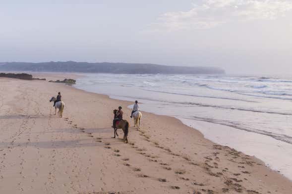 In sella ai nostri destrieri, attraverseremo durante due ore le distese di sabbia dell'oceano Atlantico, osservando lo strepitoso paesaggio offerto dalla spiaggia di Bordeira, fra i più spettacolari dell'Algarve occidentale.