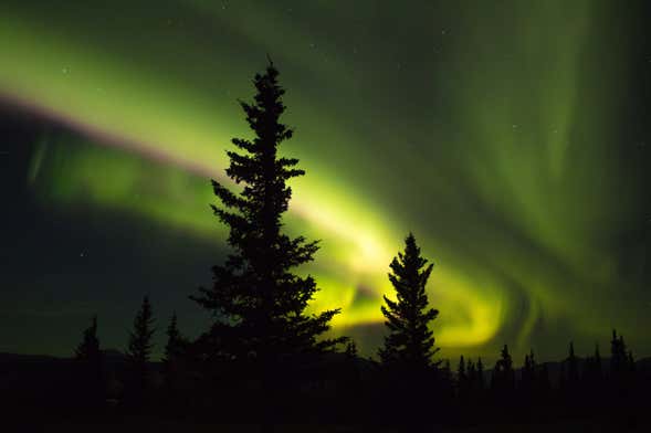Dopo aver percorso più di 1200 chilometri attraverso incantevoli paesaggi, torneremo a Fairbanks, dove esploreremo la periferia della città alla ricerca della spettacolare aurora boreale. Che emozione!