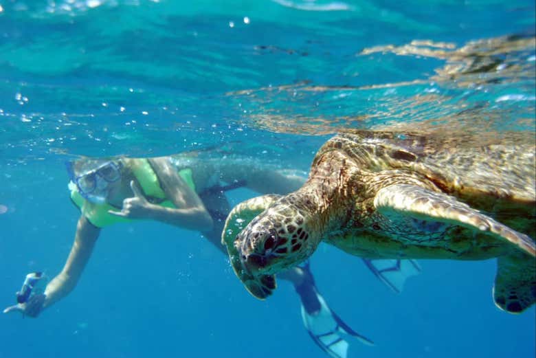 In seguito, ci fermeremo in un luogo spettacolare per fare snorkeling per circa un'ora. Saremo circondati da acque turchesi, incantevoli formazioni coralline e una grande varietà di pesci tropicali!