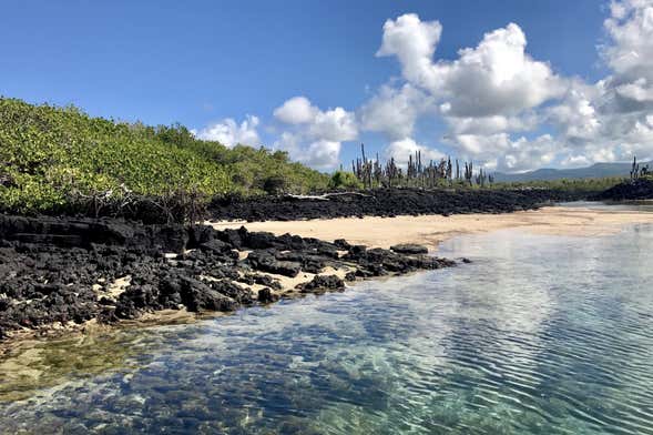 Inoltre, questo luogo è ricco di alberi di palo santo. Sapevate che gli antichi sciamani lo usavano a fini terapeutici? Ma non è tutto, perché grazie alle sue condizioni geografiche, vedremo anche zone di cactus e arbusti. Attenzione! Sul terreno potremmo anche incontrare l'iguana endemica delle Galapagos e, dall'altra parte dell'isola, avremo modo di avvistare decine di leoni marini.