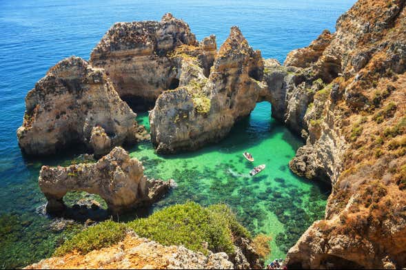 Una volta a bordo, costeggeremo il litorale in direzione sud. Giunti a Ponta da Piedade, ammireremo l'esterno delle sue impressionanti grotte di pietra calcarea, segno di identità di tutto l'Algarve. I toni ocra delle pareti rocciose, in contrasto con le acque di un blu intenso, creeranno una panoramica che vi lascerà senza parole.