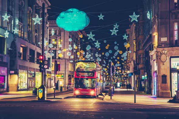 Durante il tour, un'esperta guida locale condividerà con noi affascinanti storie sul Natale passato e presente mentre sfileremo davanti a luoghi storici come Buckingham Palace, l'Abbazia di Westminster e il Parlamento. Tra le vie dello shopping e i vertiginosi grattacieli, spiccano anche gli angeli scintillanti di Regent Street. Inoltre, dal piano superiore dell'autobus decappottabile, potrete persino ammirare Shard e il Big Ben in tutto il loro splendore.