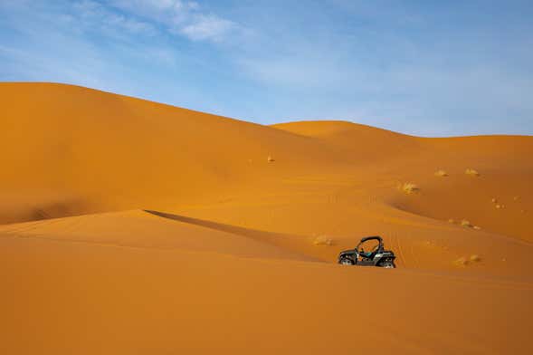 Ci troveremo all'orario stabilito nei pressi del Riad Azawad. Qui, vi attenderanno i buggy con cui realizzeremo la nostra avventura di un'ora nel deserto di Merzouga. Siete pronti? E allora andiamo!
