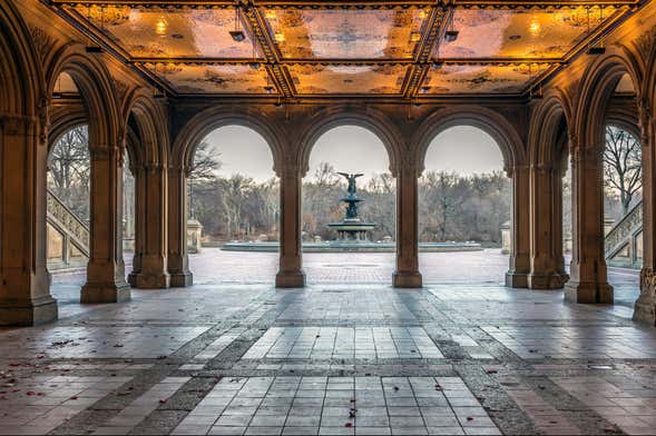 Proseguiremo la nostra visita guidata di Central Park passeggiando in questo parco emblematico e osservando, come non potrebbe essere in altro modo, la Fontana di Bethesda, nel centro del parco. Sapevate che con la Fontana di Trevi è la più filmata del mondo? Potete ricordare qualcuno dei film o serie che qui si girarono?