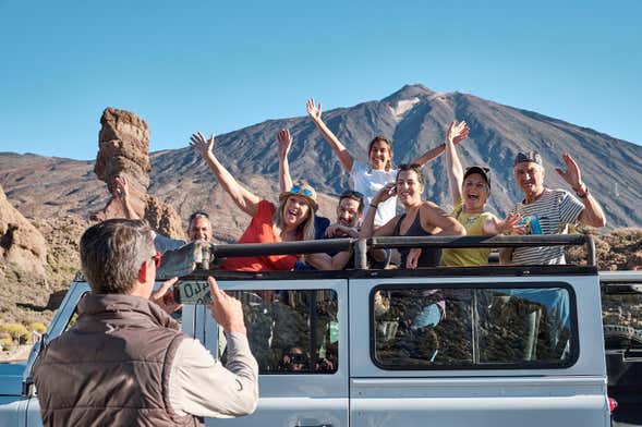 Alle 8:20, passeremo a prendervi al centro commerciale Gran Sur per dare inizio al nostro tour in jeep al Teide e a Masca. A bordo di un fuoristrada decappottabile, visiteremo alcuni dei paesaggi e delle città più emblematiche di Tenerife. Rombo di motori!