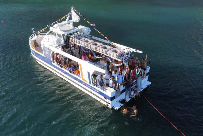 Inizieremo la nostra navigazione lungo le coste della spiaggia di Ribeira do Cavalo e, da lì, proseguiremo la nostra traversata atlantica nel Parco Marino Professore Luiz Saldanha. Questa riserva, parte integrante del Parco Naturale di Arrábida, è caratterizzata da una sorprendente biodiversità. Grazie alle finestre sottomarine della barca, potremo ammirare i pesci che popolano questo ecosistema.