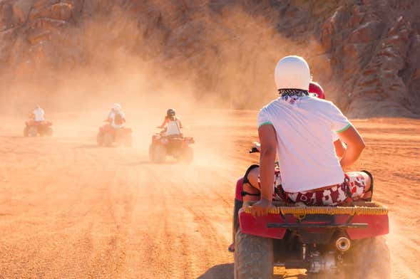 All'orario indicato, vi verremo a prendere al vostro hotel a Sharm el-Sheikh e ci dirigeremo verso il deserto egiziano, nella penisola del Sinai. Una volta arrivati, vi verrà dato un casco e vi verranno fornite le istruzioni necessarie per guidare il vostro quad.